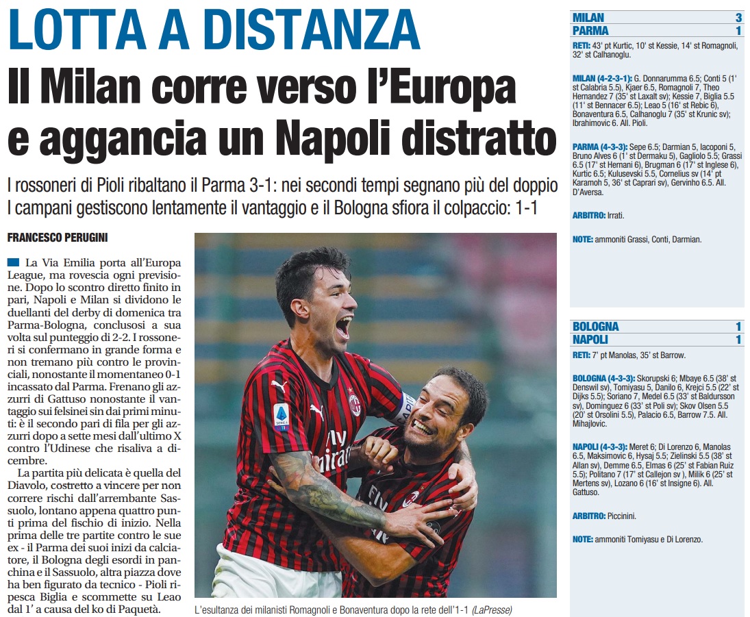 | La prima pagina de "Il Corriere della Sera" di lunedì 13 luglio |